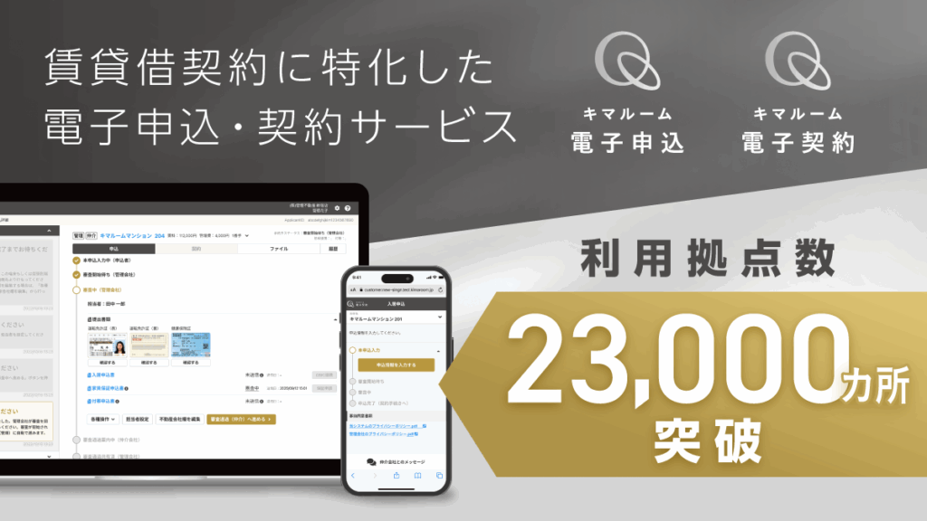 【お知らせ】「キマルーム 電子申込」「キマルーム 電子契約」利用拠点数23,00...